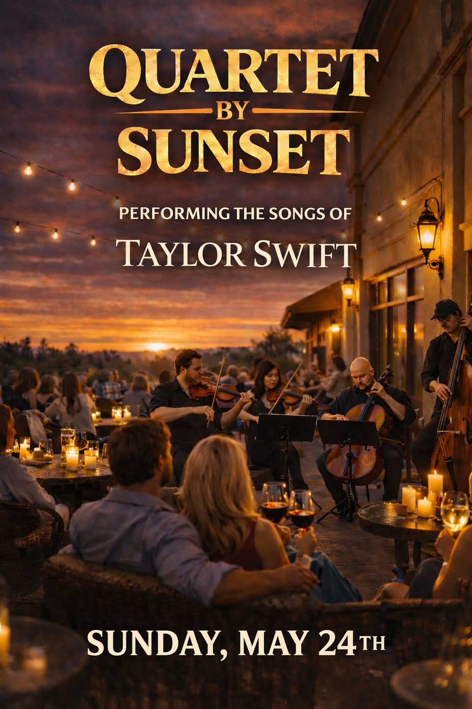 A string quartet performing amazing songs that you love. Each month will be a special theme. This months theme is The Songs of Coldplay & Imagine Dragons. This will be on our classy patio during the sunset.