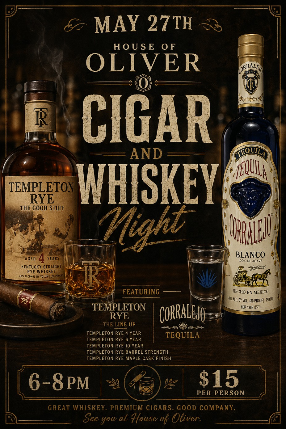 House of Oliver is partnering with Viona Medical Spa for an amazing event, Bourbon and Botox. We will have special pricing and great deals so you can feel younger and look younger. Will take place in our private clubroom. This also partners with our Cigar and Whiskey Night - so join us on the patio for an amazing event.