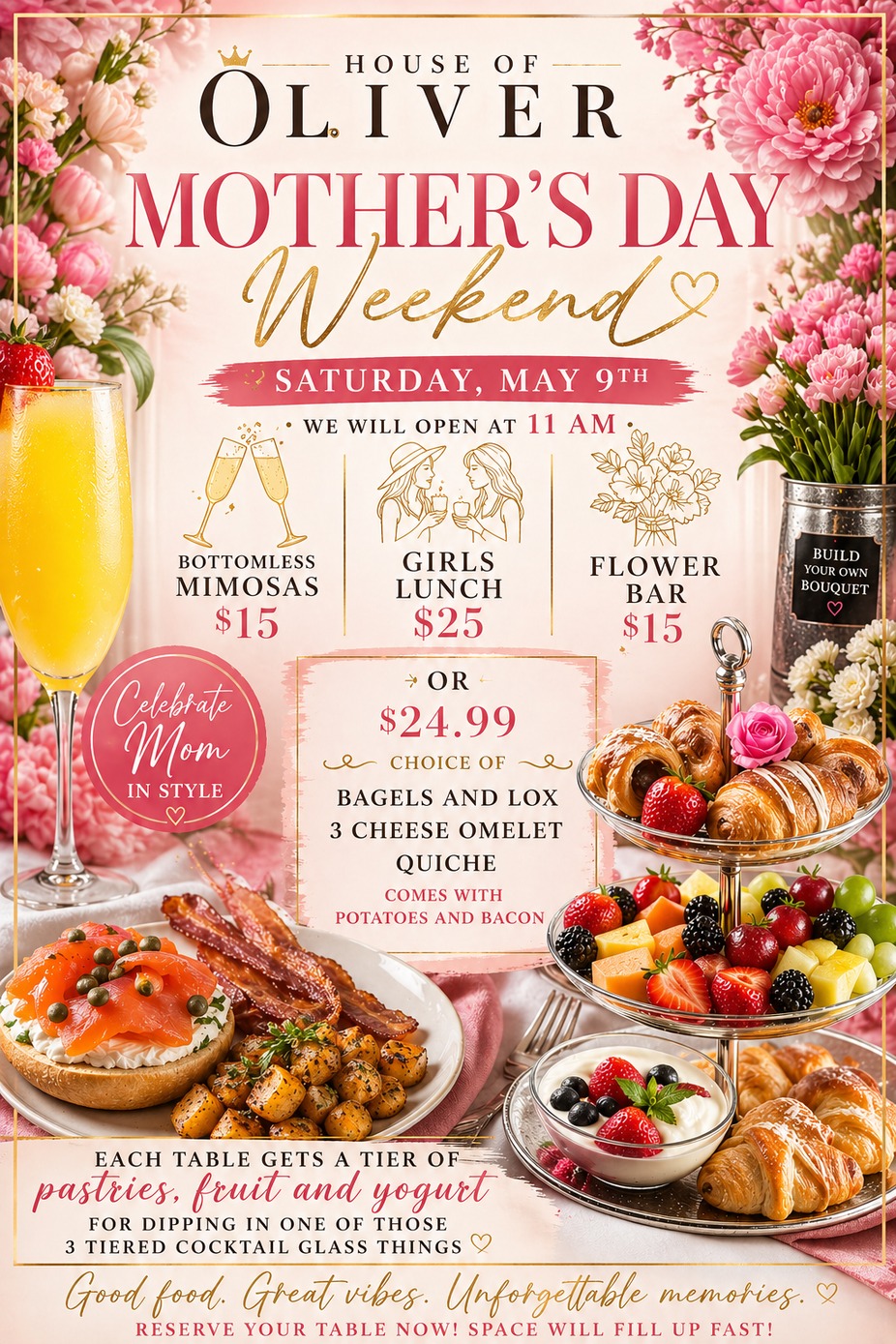 Treat Mom Right Come and Enjoy Build your own Fresh Flower Bouquet Local Fresh Cut Flowers - Bouquet starts at just $15 Then enjoy Bottomless Mimosas on our classy patio - only $15 Going to be a beautiful Day CLICK HERE for Reservations